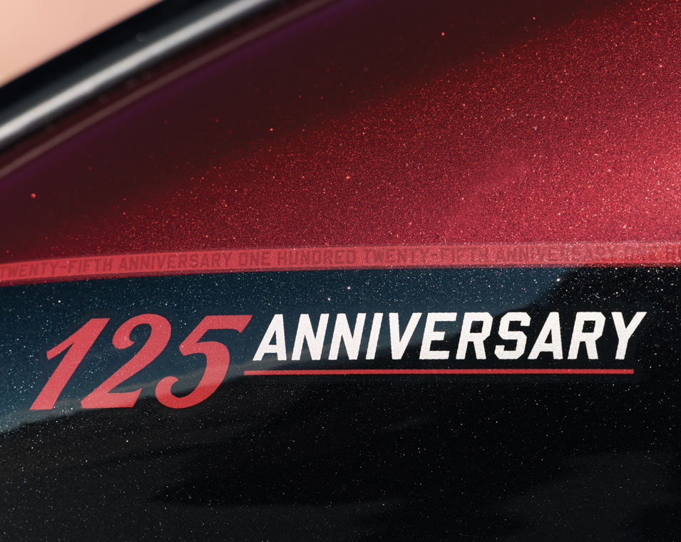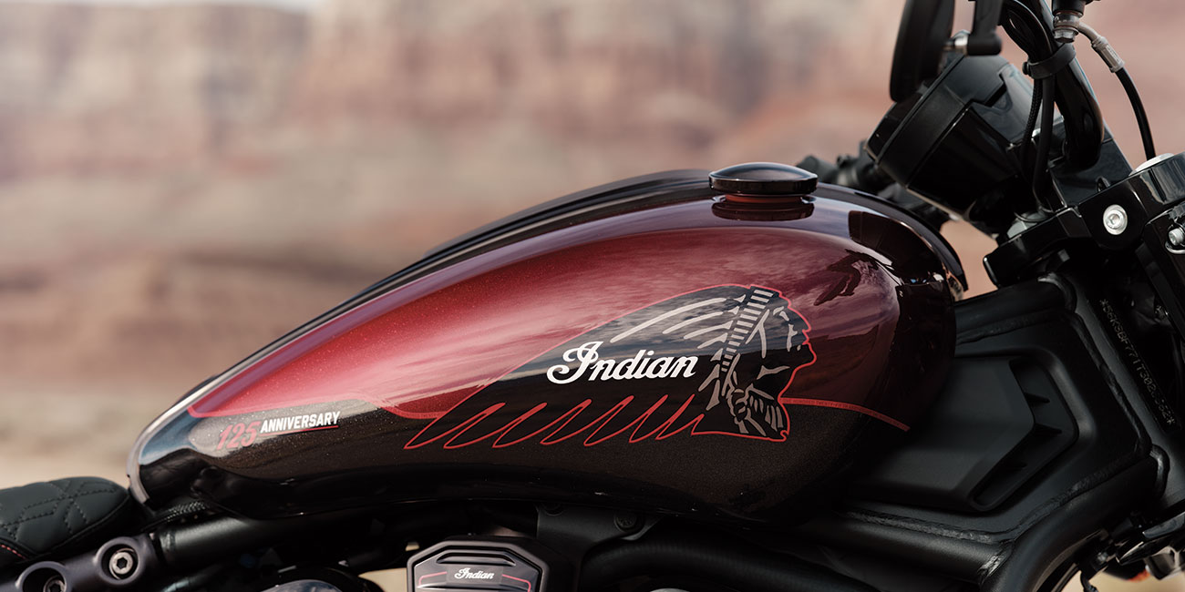 La Scout Bobber Édition 125e Anniversaire va à l’essentiel. Sa position de conduite affirmée et son design bobber classique sont mis en valeur par des détails peints à la main avec soin, ainsi que des badges spécifiques du 125e anniversaire.
