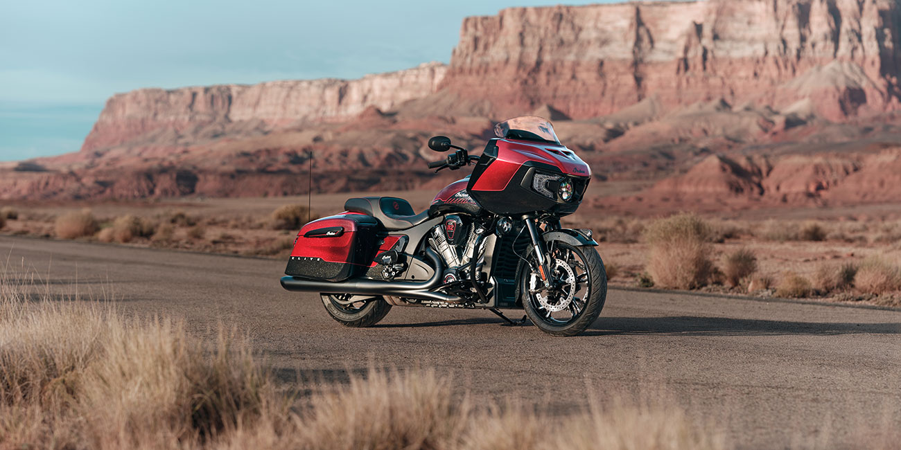 A partir de 23 890 €L’Indian Challenger Édition 125e Anniversaire met l’accent sur la performance et la maîtrise. Sa tête de fourche montée sur le chassis, ses finitions noires et son moteur PowerPlus 112 ci à refroidissement liquide sont accompagnés de détails peints à la main et de badges spécifiques du 125e anniversaire.